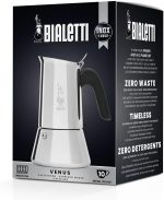- Istruzioni per la pulizia: Venus Bialetti deve essere pulita solo con acqua dopo l'uso; Non usare detergenti; Il prodotto non deve essere lavato in lavastoviglie poiché questo potrebbe causare il danneggiamento del prodotto e quindi alterare il gusto del caffè