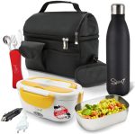 SPICE Set Borsa Termica con Tracolla + Bottiglia Termica Acciaio Inox 500 ml Doppia Parete + Scaldavivande Amarillo Inox Plus Doppio Voltaggio + Set 3 Posate in Acciao Inox SPP013DV-SETBBP500